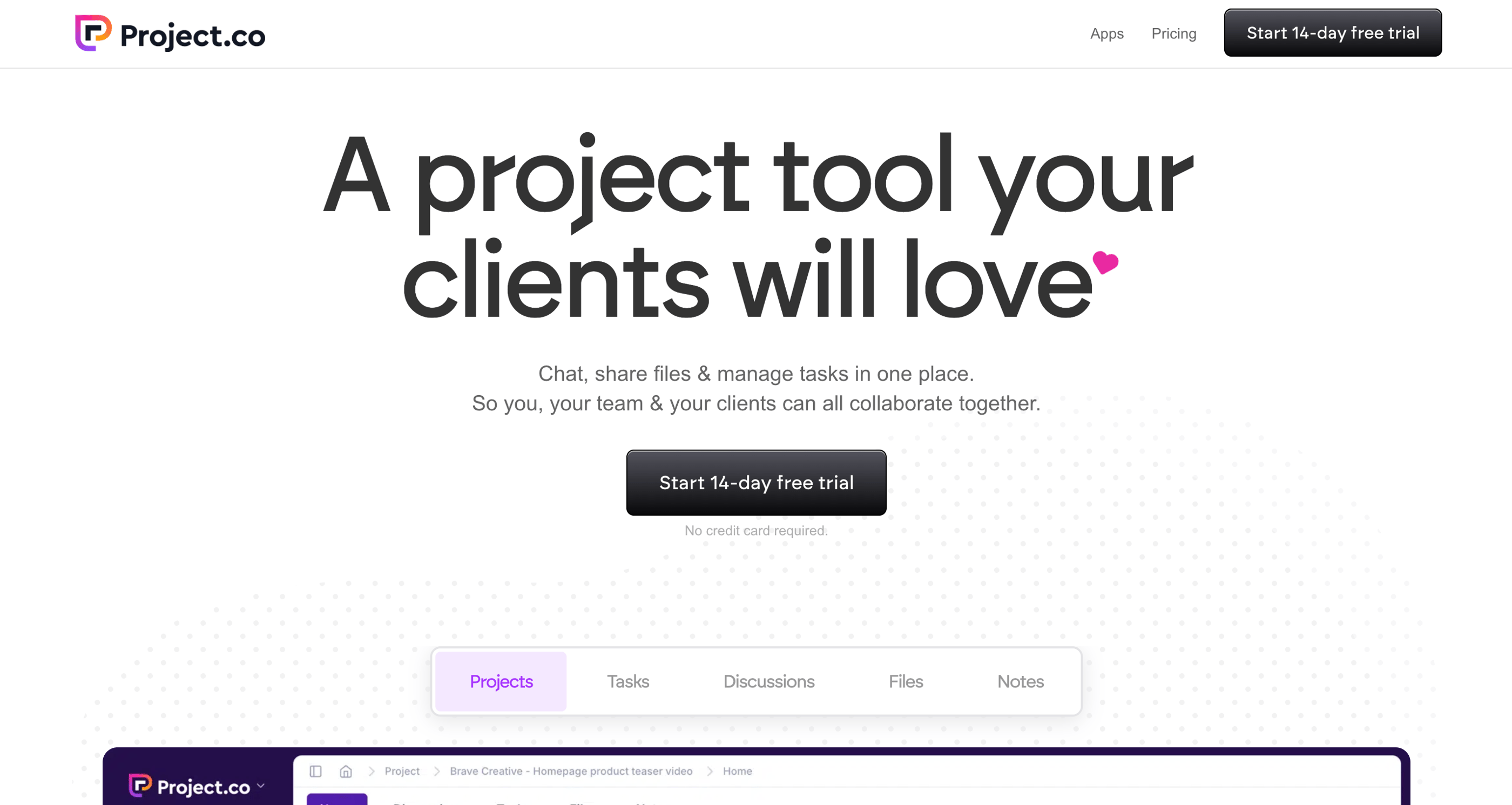 Project.co is a streamlined project management collaboration platform built specifically for small businesses and client-facing teams.
