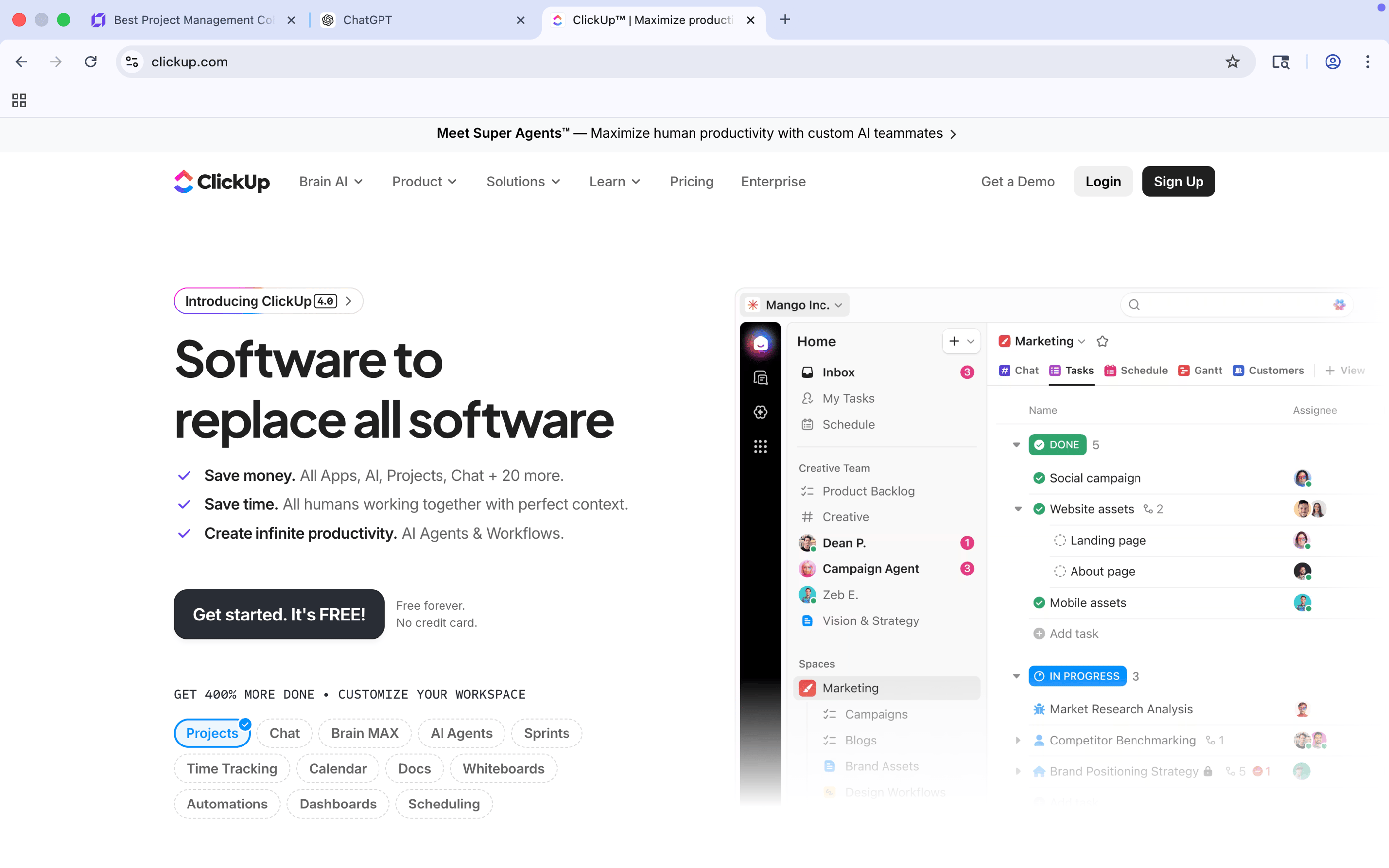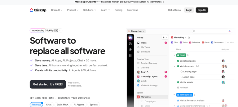 If you're exploring a project management collaboration platform for the first time, ClickUp is the most complete, reasonable and flexible solution to start with. Explore for free.